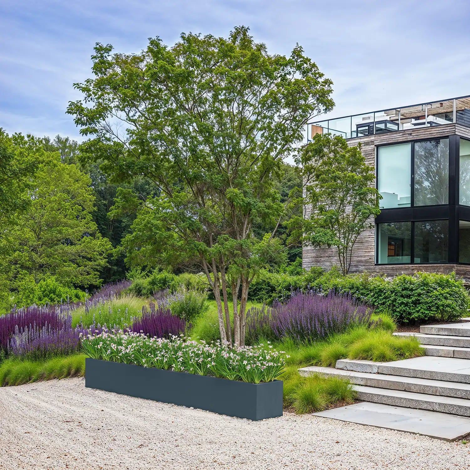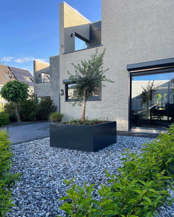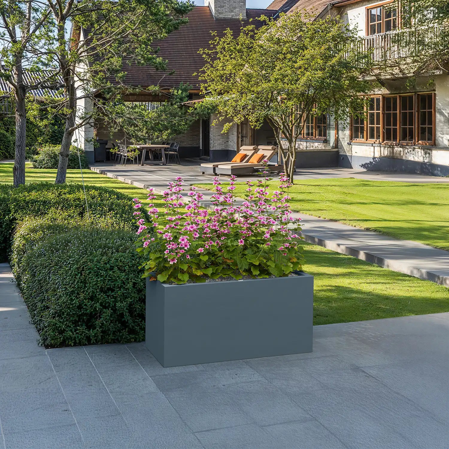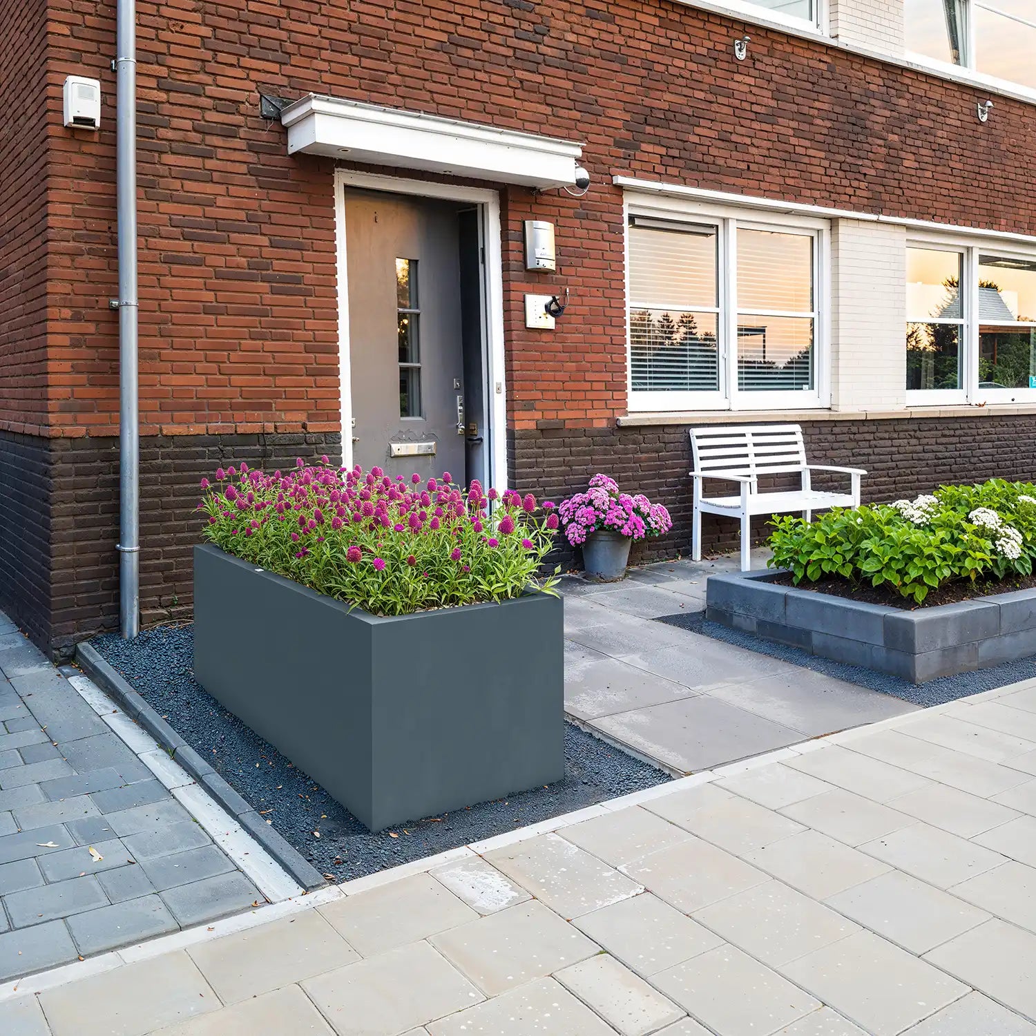 Antraciet, een diepe tint grijs, is perfect voor wie een subtielere stijl wil dan zwart. Een antraciete plantenbak combineert goed met zowel heldere bloemkleuren als groenere planten en zorgen voor een stijlvolle, tijdloze uitstraling.