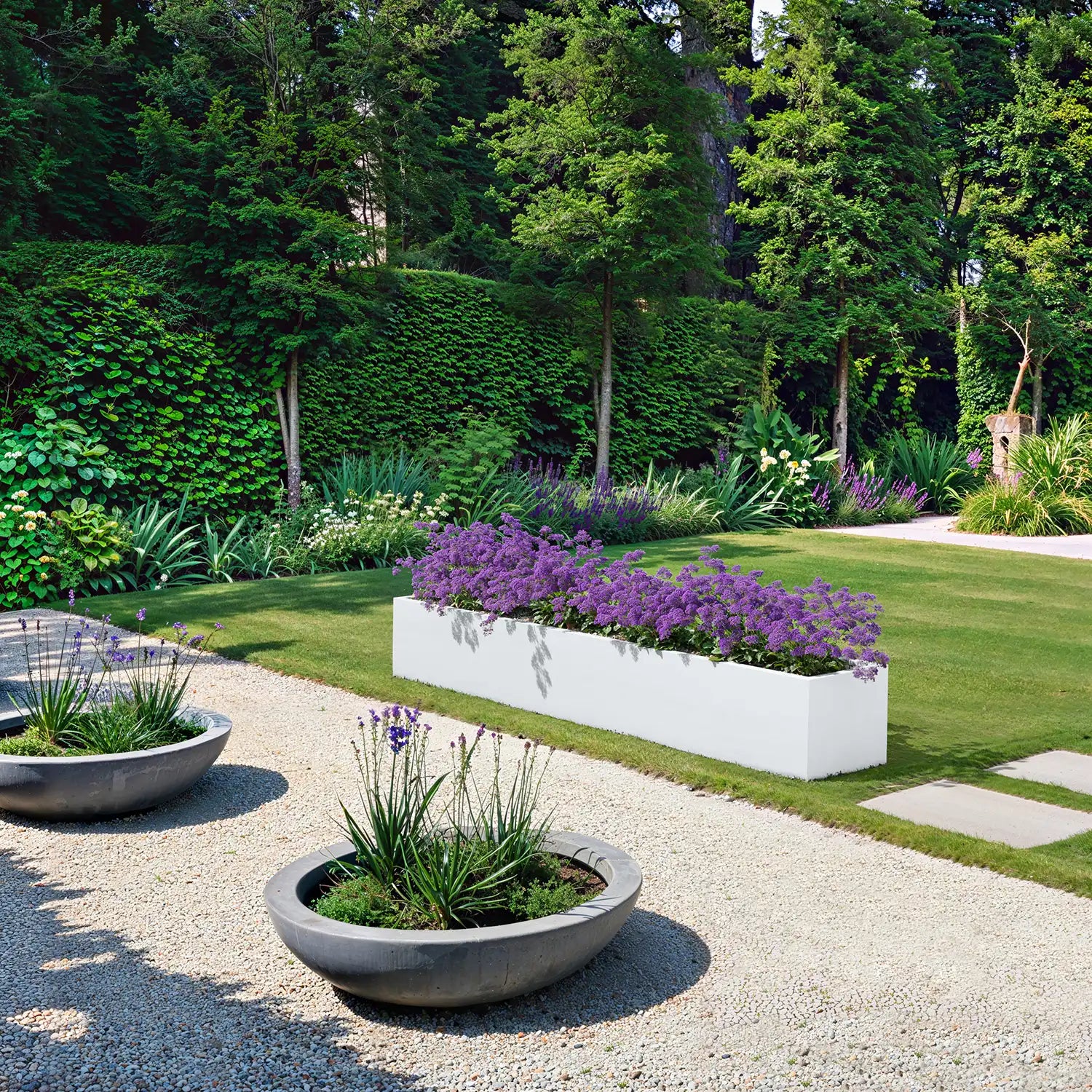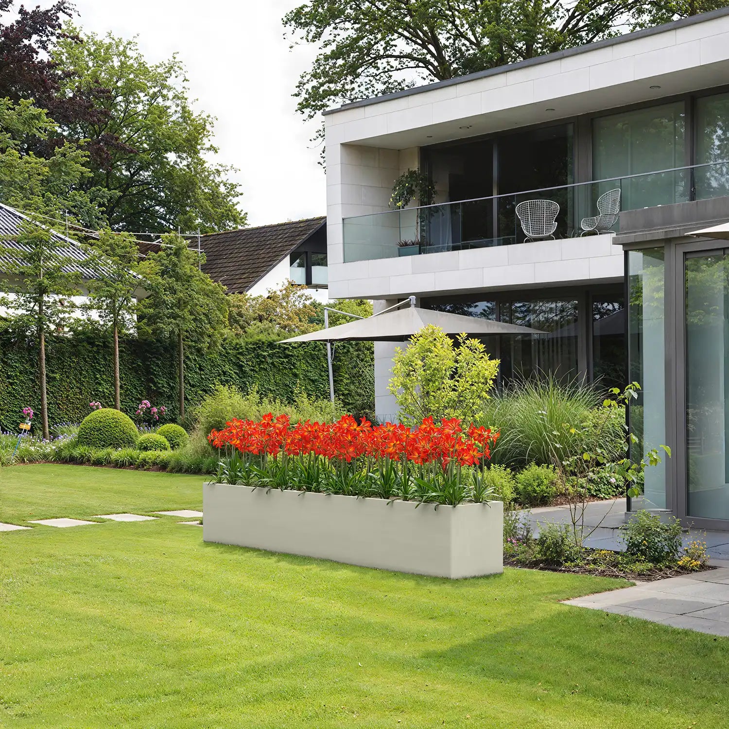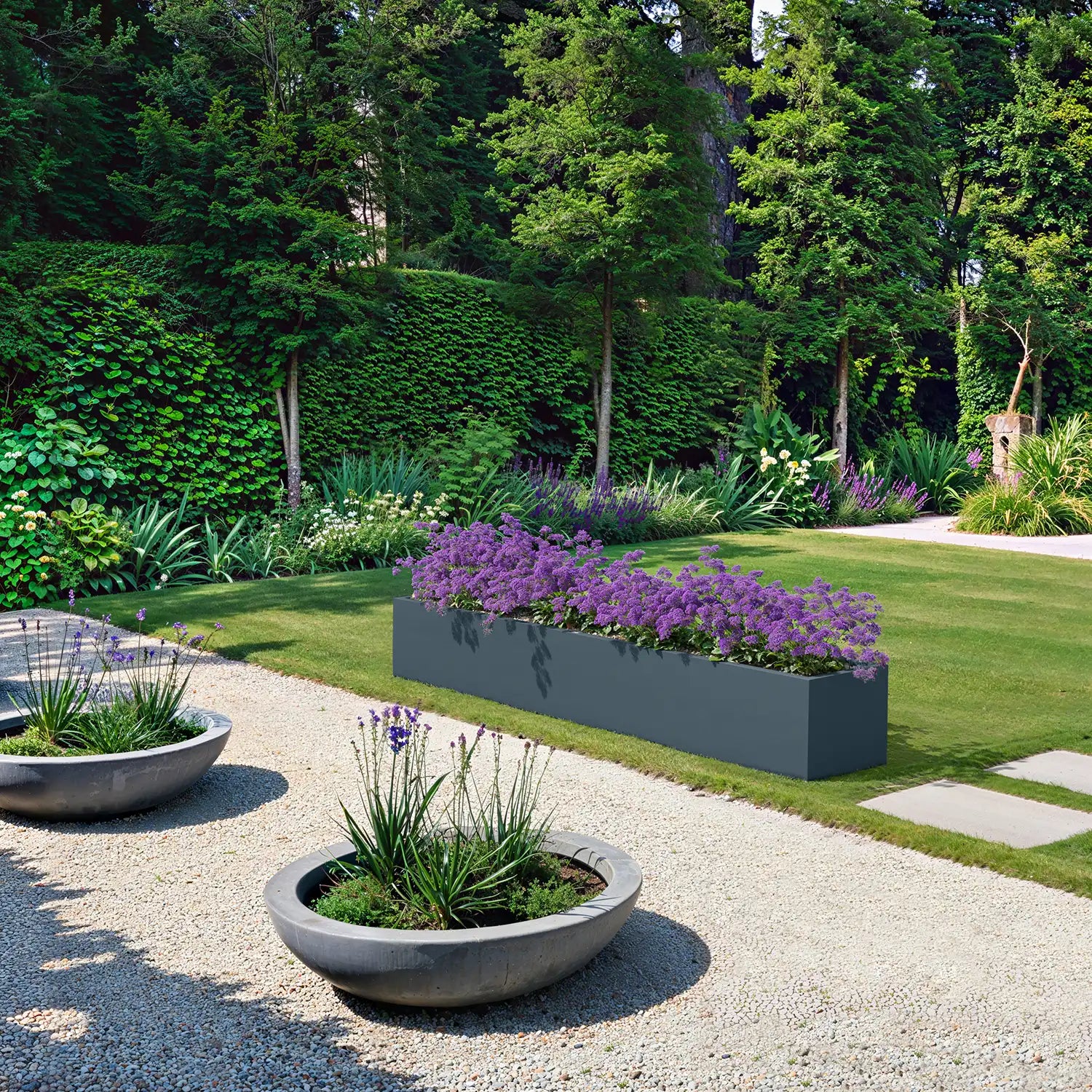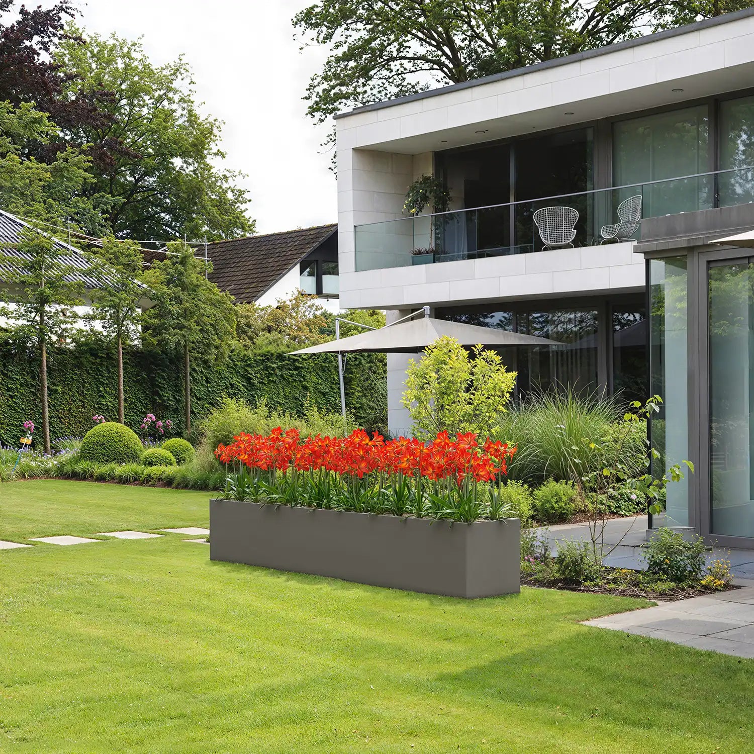 Langwerpige plantenbakken zijn perfect voor het creëren van een natuurlijke afscheiding of als blikvanger in je tuin. Ze zijn bijzonder geschikt voor het plaatsen van meerdere planten en kunnen een dynamisch effect aan je buitenruimte toevoegen. Kies uit een reeks van materialen zoals elegant keramiek of robuust hout om elke gewenste stijl te complementeren.