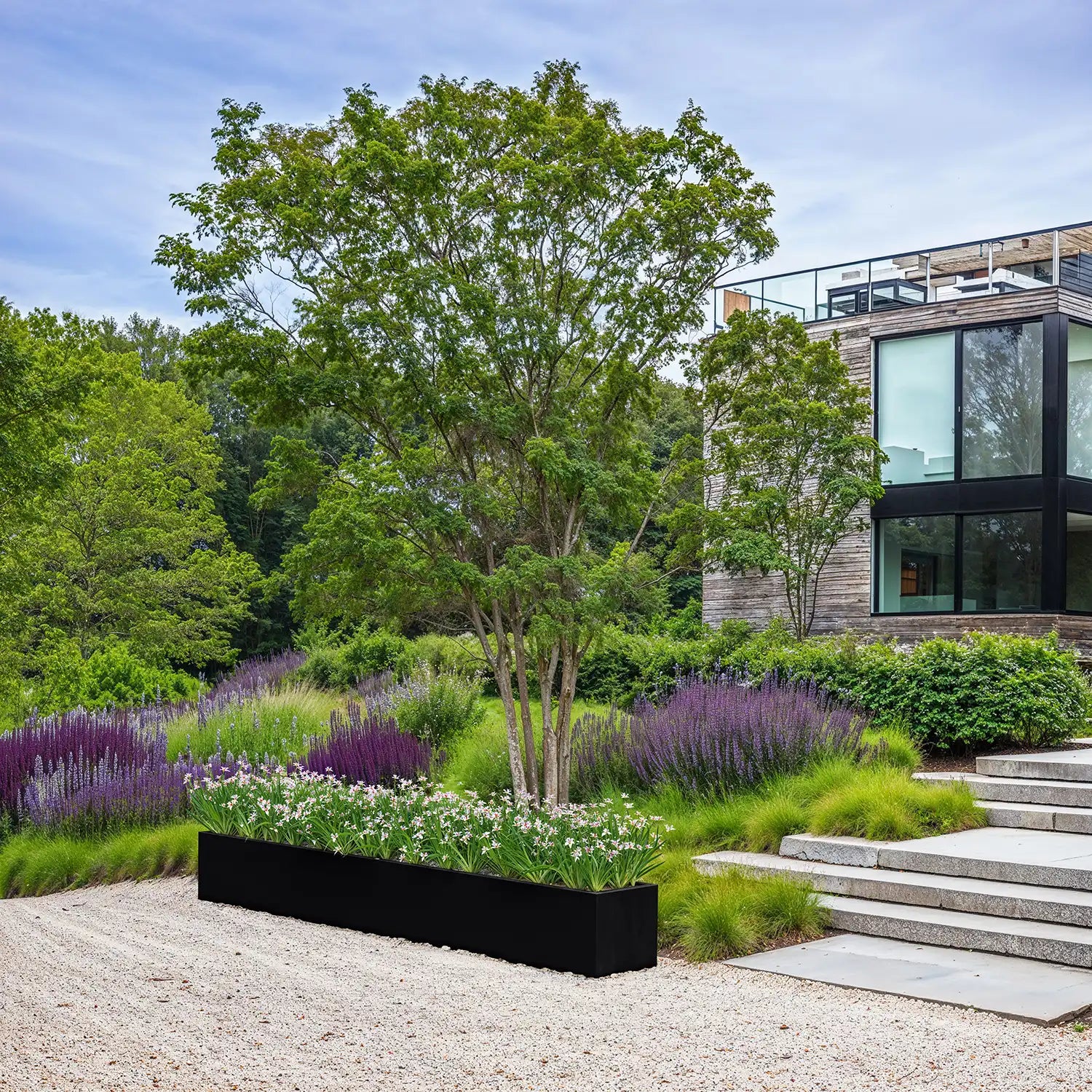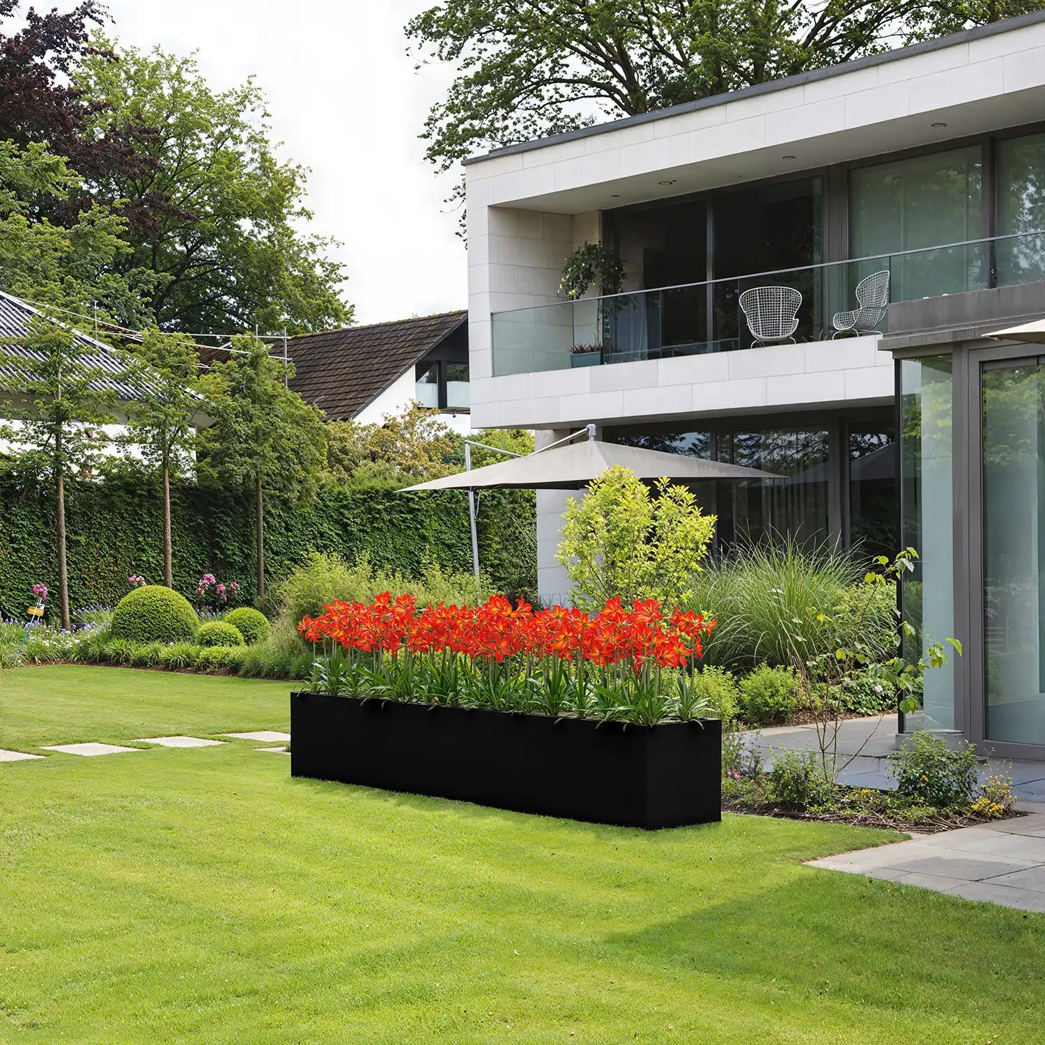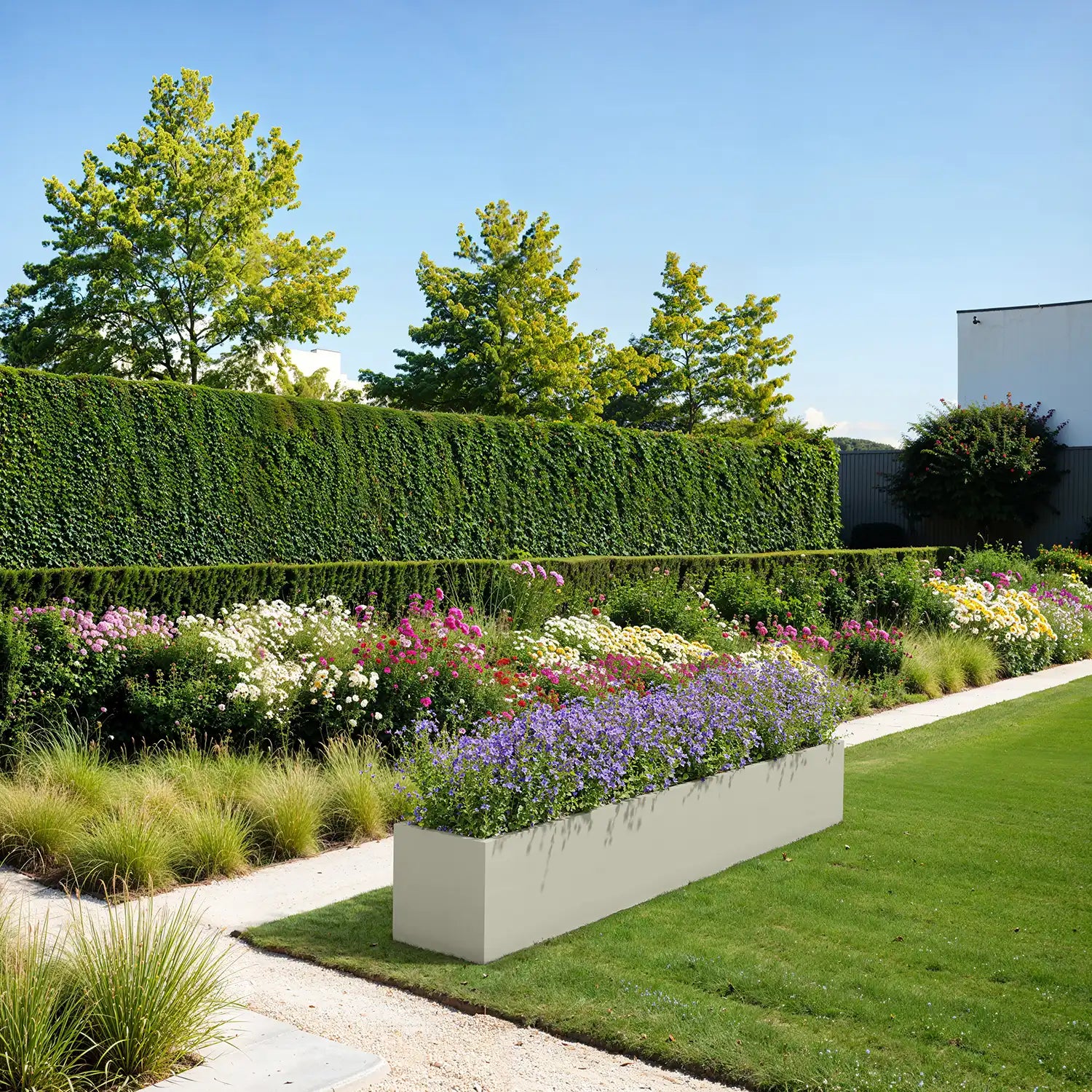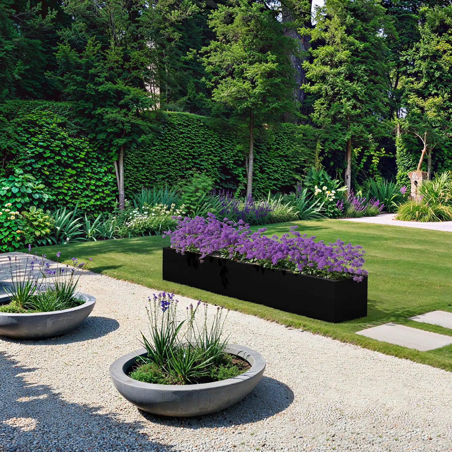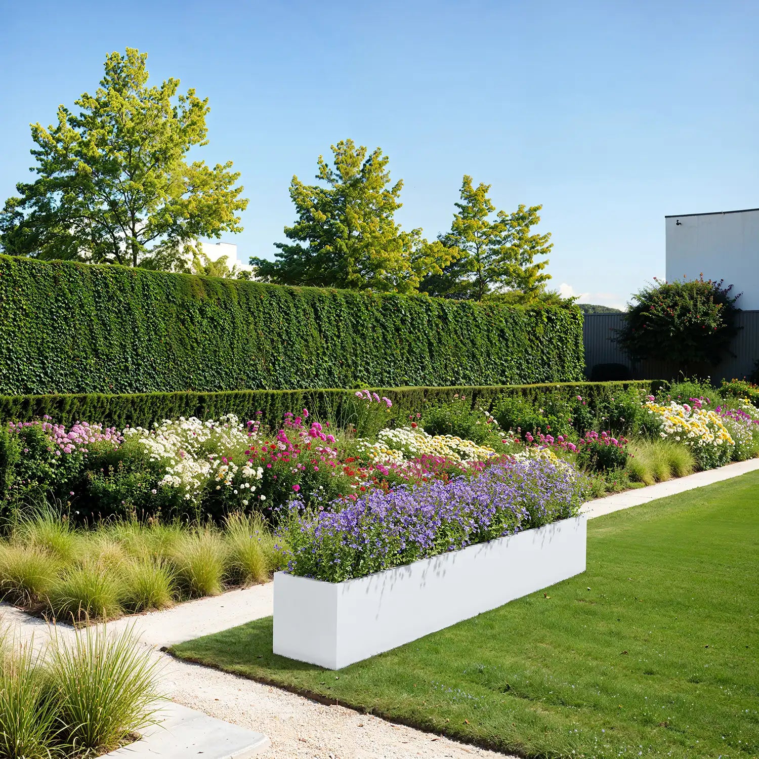 Langwerpige plantenbakken zijn perfect voor het creëren van een natuurlijke afscheiding of als blikvanger in je tuin. Ze zijn bijzonder geschikt voor het plaatsen van meerdere planten en kunnen een dynamisch effect aan je buitenruimte toevoegen. Kies uit een reeks van materialen zoals elegant keramiek of robuust hout om elke gewenste stijl te complementeren.