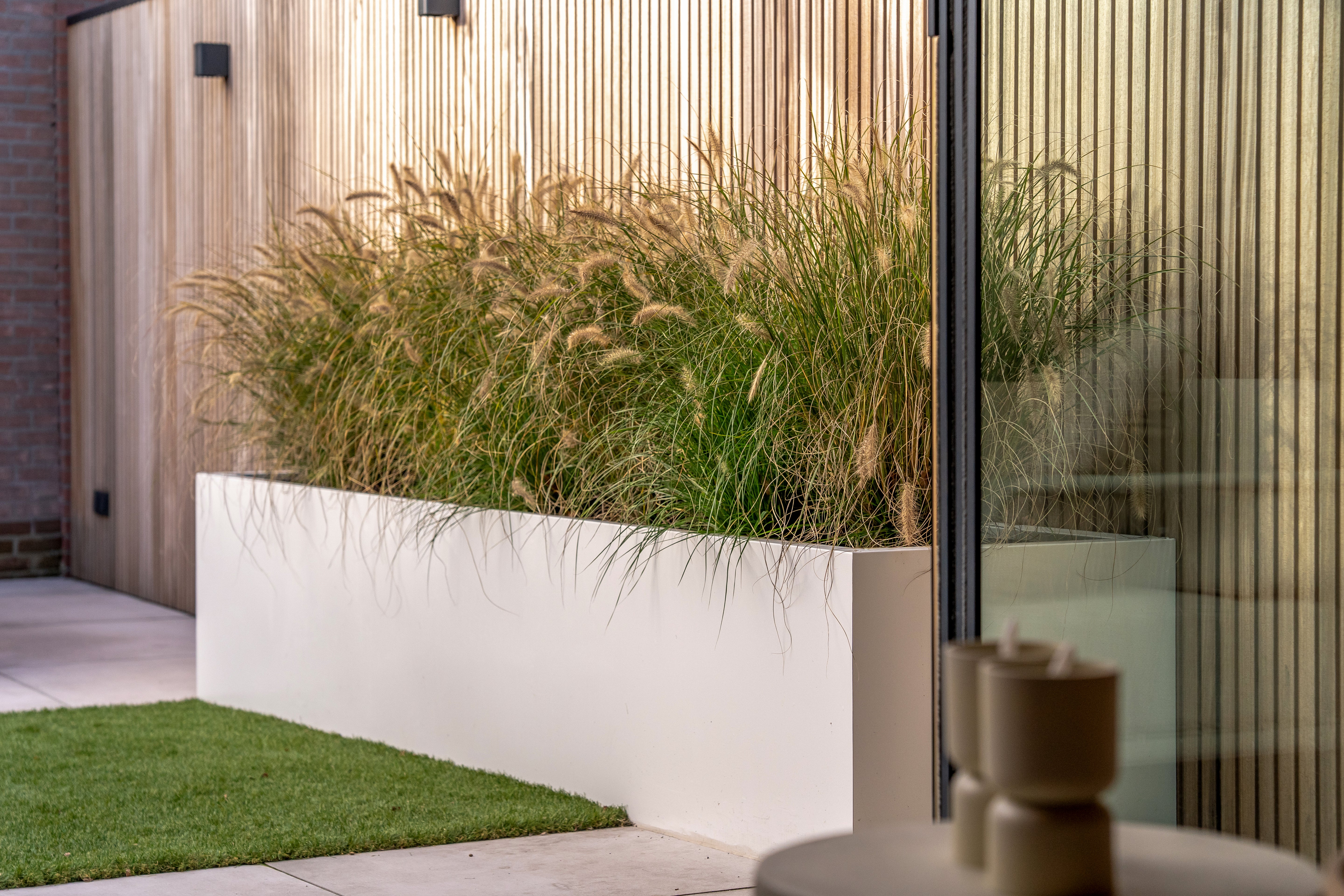 Daarnaast is een smalle plantenbak bijzonder geschikt voor het creëren van privacy. Door hogere planten, siergrassen of groenblijvende heesters te plaatsen, vorm je een natuurlijke afscheiding zonder dat je een massieve schutting nodig hebt. Dit geeft een luchtiger en moderner effect, terwijl je toch beschutting en geborgenheid ervaart.